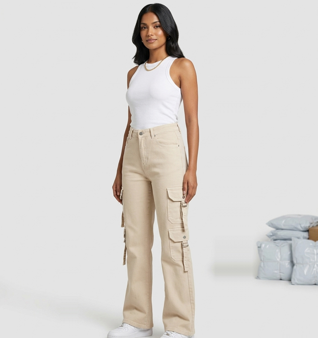 Fabric: High-Quality Cotton / Twill Color: Beige / Sand Fit: Straight Fit / High-Rise Style: Utility Cargo / Streetwear Closure: Zip Fly with Metal Button