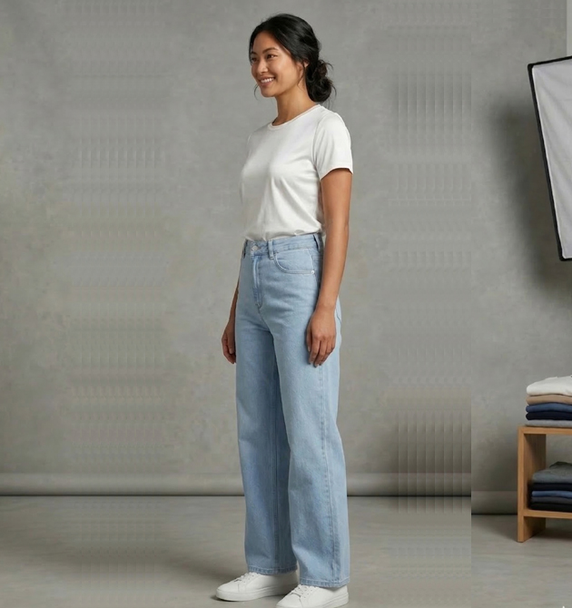 Fabric: Premium Cotton Denim Color: Light Blue / Sky Wash Fit: Wide-Leg / High-Rise Style: Casual Chic / Minimalist / Streetwear Closure: Zip Fly with Metallic Top Button