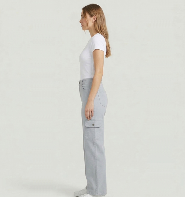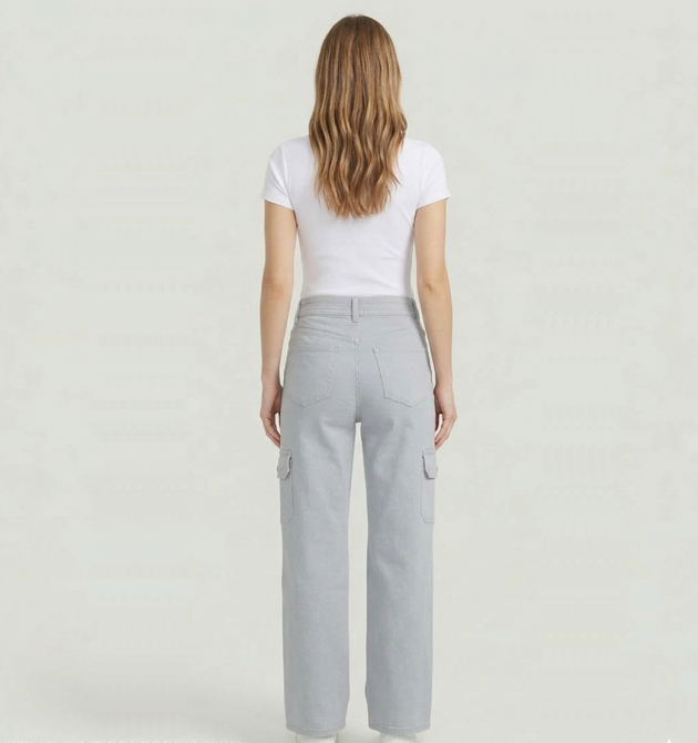 Fabric: High-Quality Cotton Denim / Twill Color: Slate Grey / Dove Grey Fit: Straight Fit / High-Rise Style: Utility Cargo / Casual Chic / Streetwear Closure: Zip Fly with Metallic Button