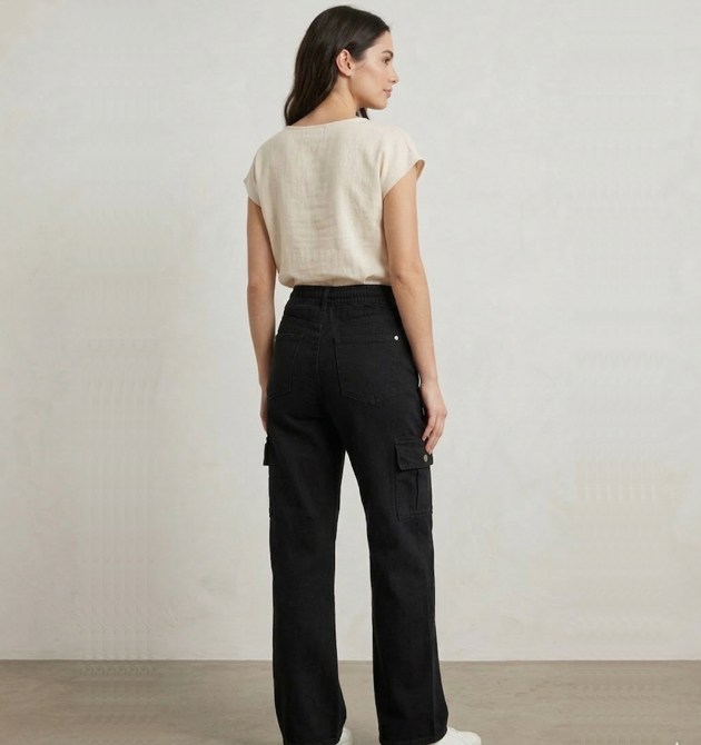 Fabric: High-Quality Cotton Denim / Twill Color: Slate Grey / Dove Grey Fit: Straight Fit / High-Rise Style: Utility Cargo / Casual Chic / Streetwear Closure: Zip Fly with Metallic Button