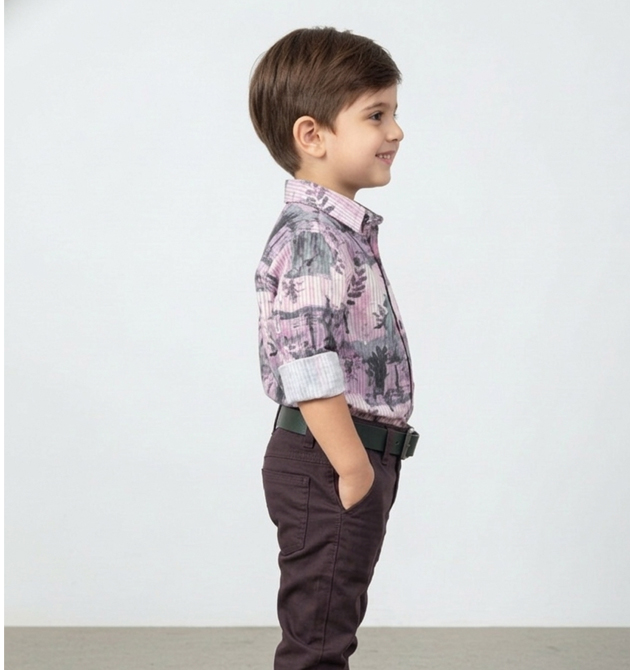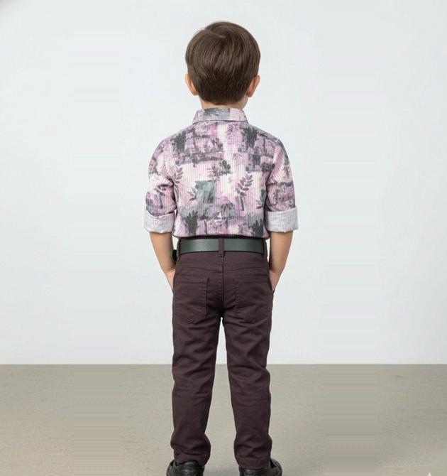 Premium Chino Trousers: Tailored trousers in a rich plum-burgundy shade, crafted from high-quality cotton-stretch fabric to allow for easy movement and play.