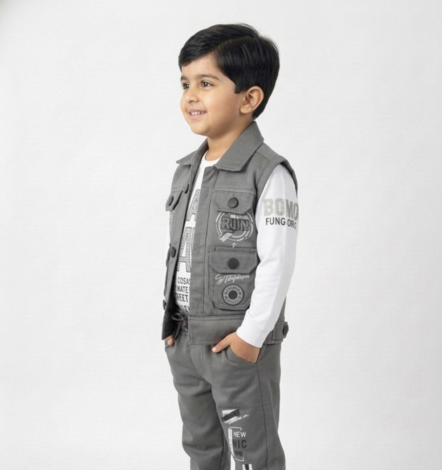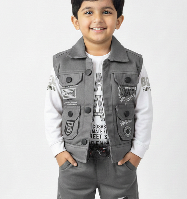 Set Includes: 1 Long-sleeve T-shirt, 1 Utility Vest, and 1 Pair of Joggers.